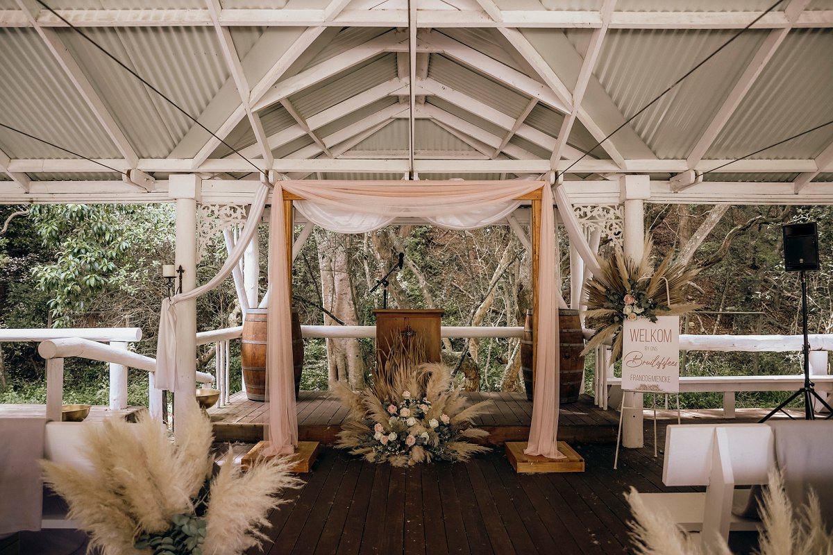 Dié trou venue is te midde van ʼn inheemse woud geleë. Luister na die strelende geluid van die pragtige klanke van die natuur, die kristalhelder ravyn wat verbyloop en sangvoëls wat jou serenade terwyl julle julle heiligste geloftes vir mekaar sê. Niks kan meer skouspelagtig wees nie!