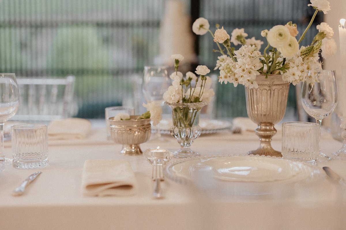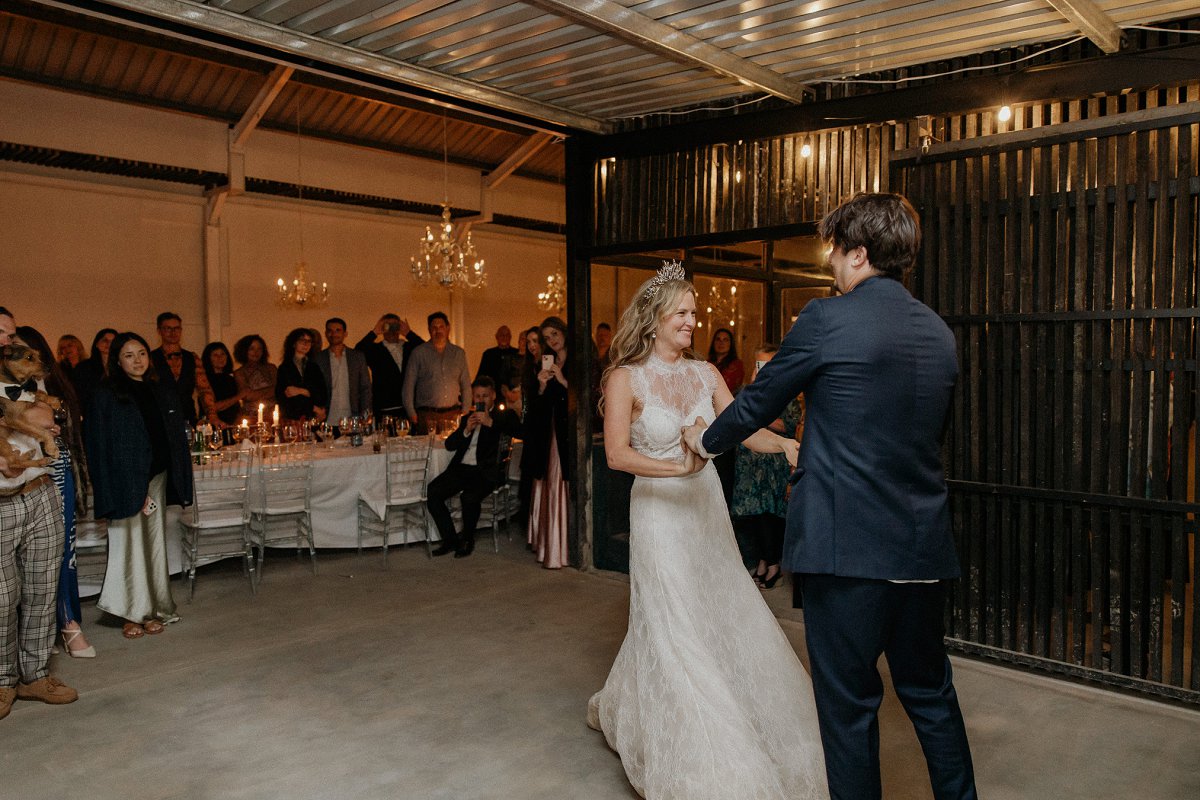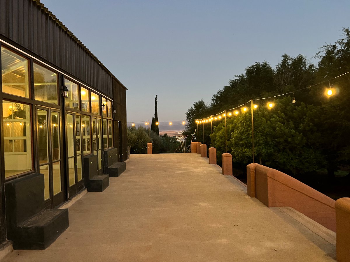 Eerder as om ’n styl te dikteer, bied die plaas ’n sagte, elegante agtergrond – ’n inspirerende leë doek wat gevorm kan word om by enigiets te pas, van ontspanne plattelandse byeenkomste tot meer kontemporêre vieringe. Die moderne staalraamplaasskuur vang hierdie gees perfek vas, met sy hoë plafonne, skoon lyne en omringende terras wat oor die plaas uitkyk. Die geraamde glasfasade trek die omliggende landskap die saal binne en skep ’n onvergeetlike omgewing vir skemerkelkie-uur, ’n lang feesmaal saam met geliefdes of ’n aand van dans.