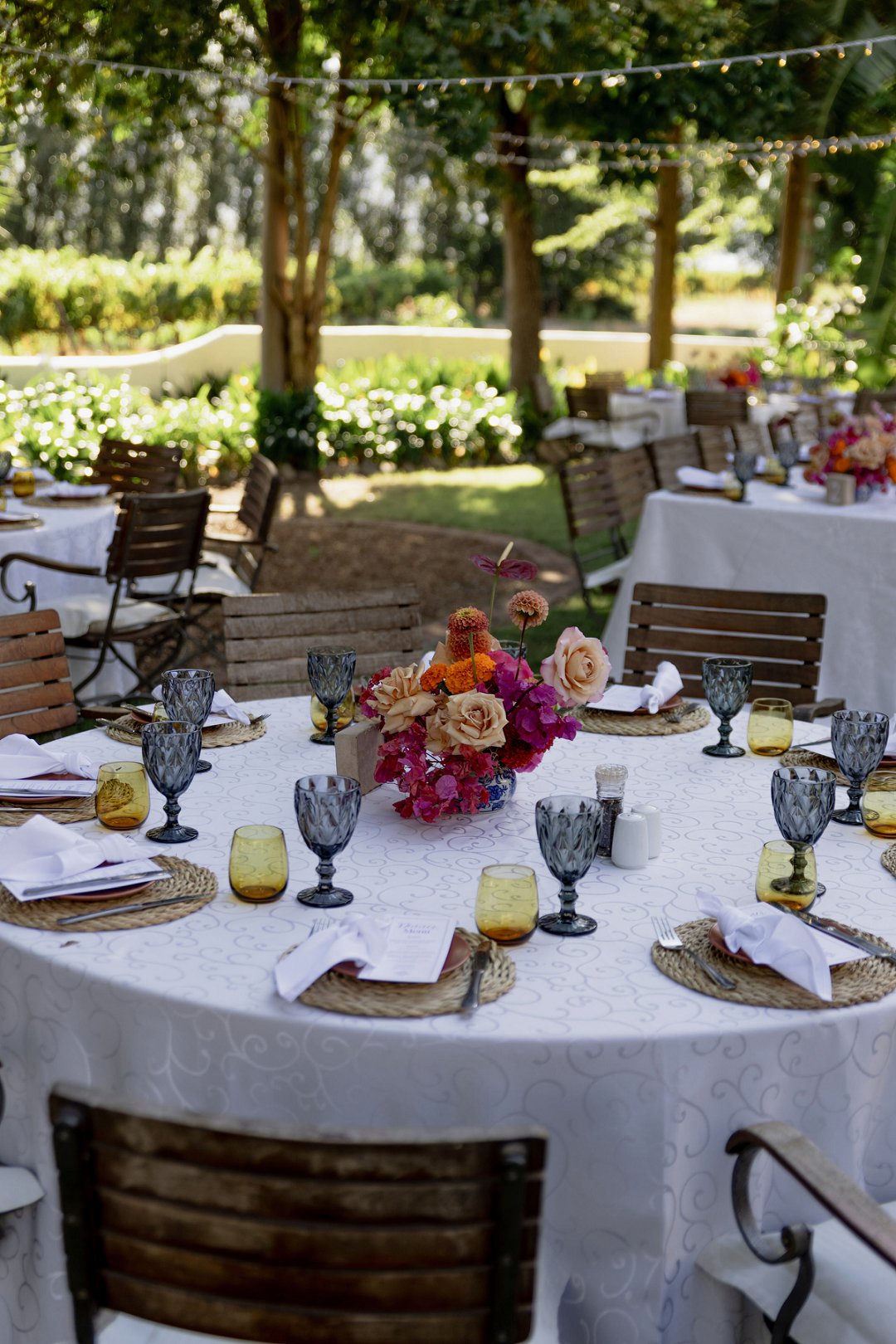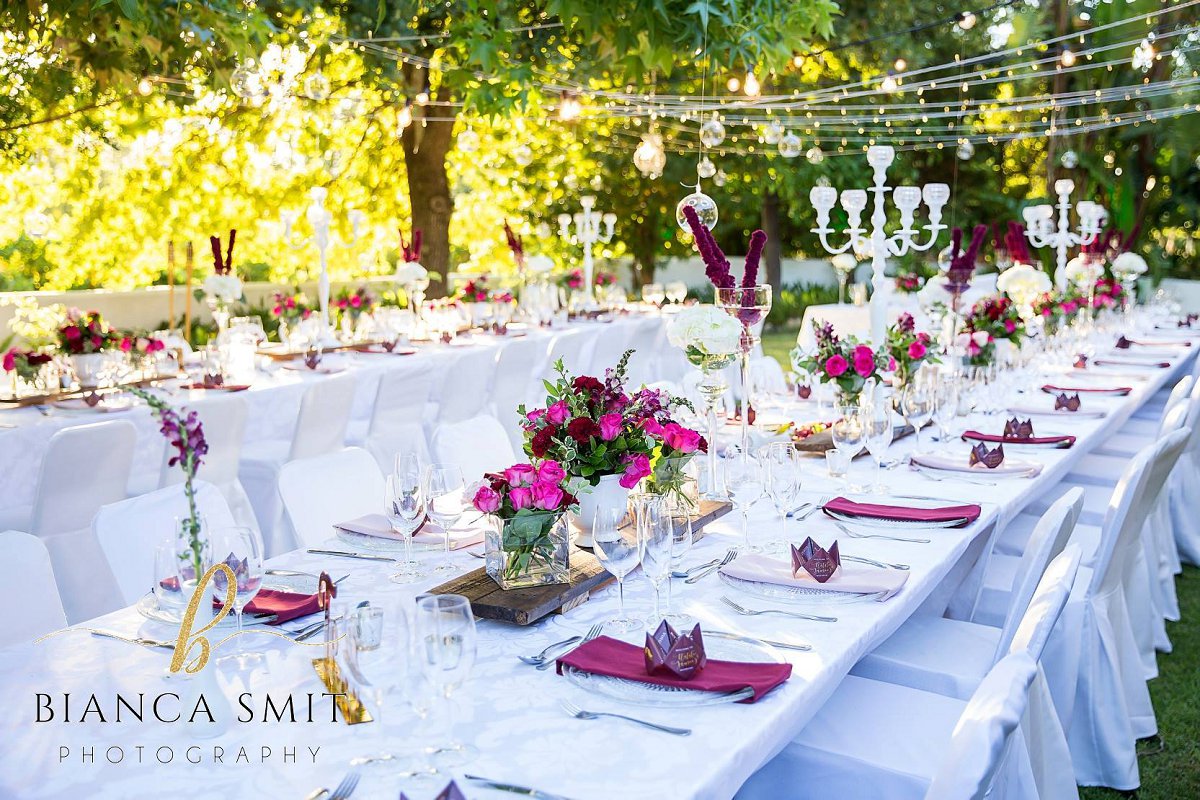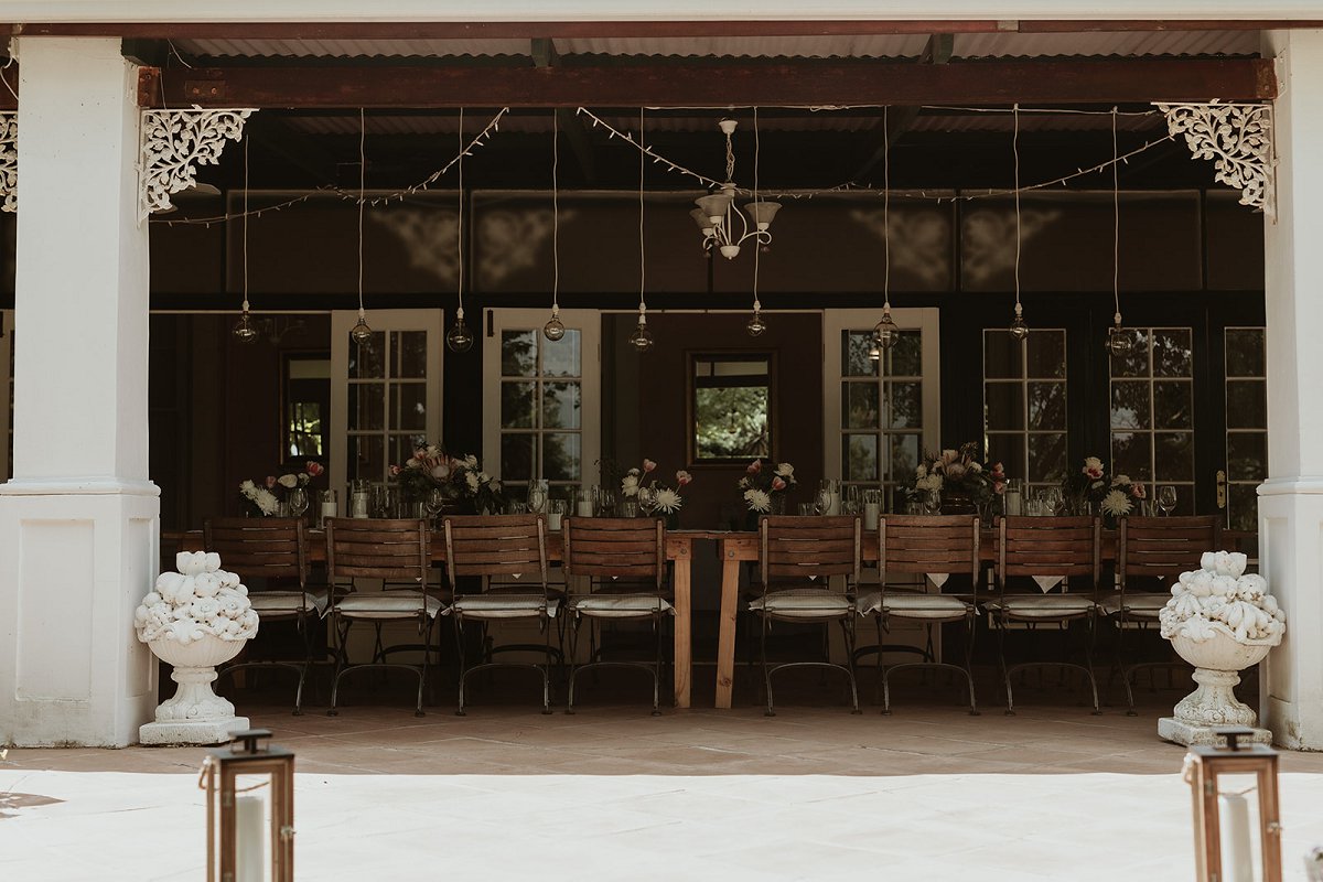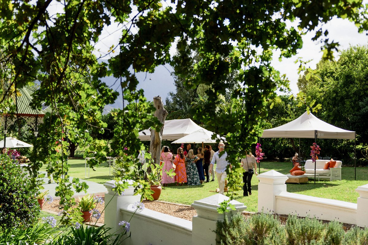 Die onthaalruimtes is geskik vir ʼn intieme groep van 60 gaste binne, of 70 gaste buite. Die Barn bied sitplek vir 60 gaste sonder dansspasie, of 40 gaste met ʼn dansvloer. Die tuin-opsie laat tot 70 gaste onder die skaduryke eikebome toe, of tot 30 gaste op die verhoogde eetkamer-patio – albei perfekte ruimtes vir ʼn viering onder die sterre van Franschhoek.