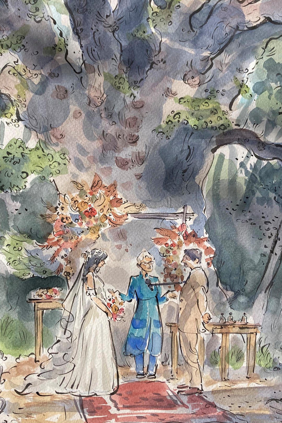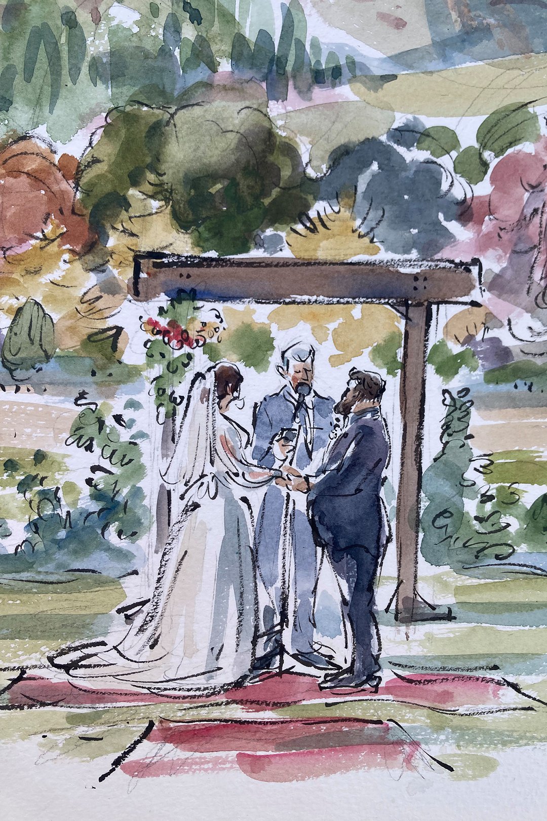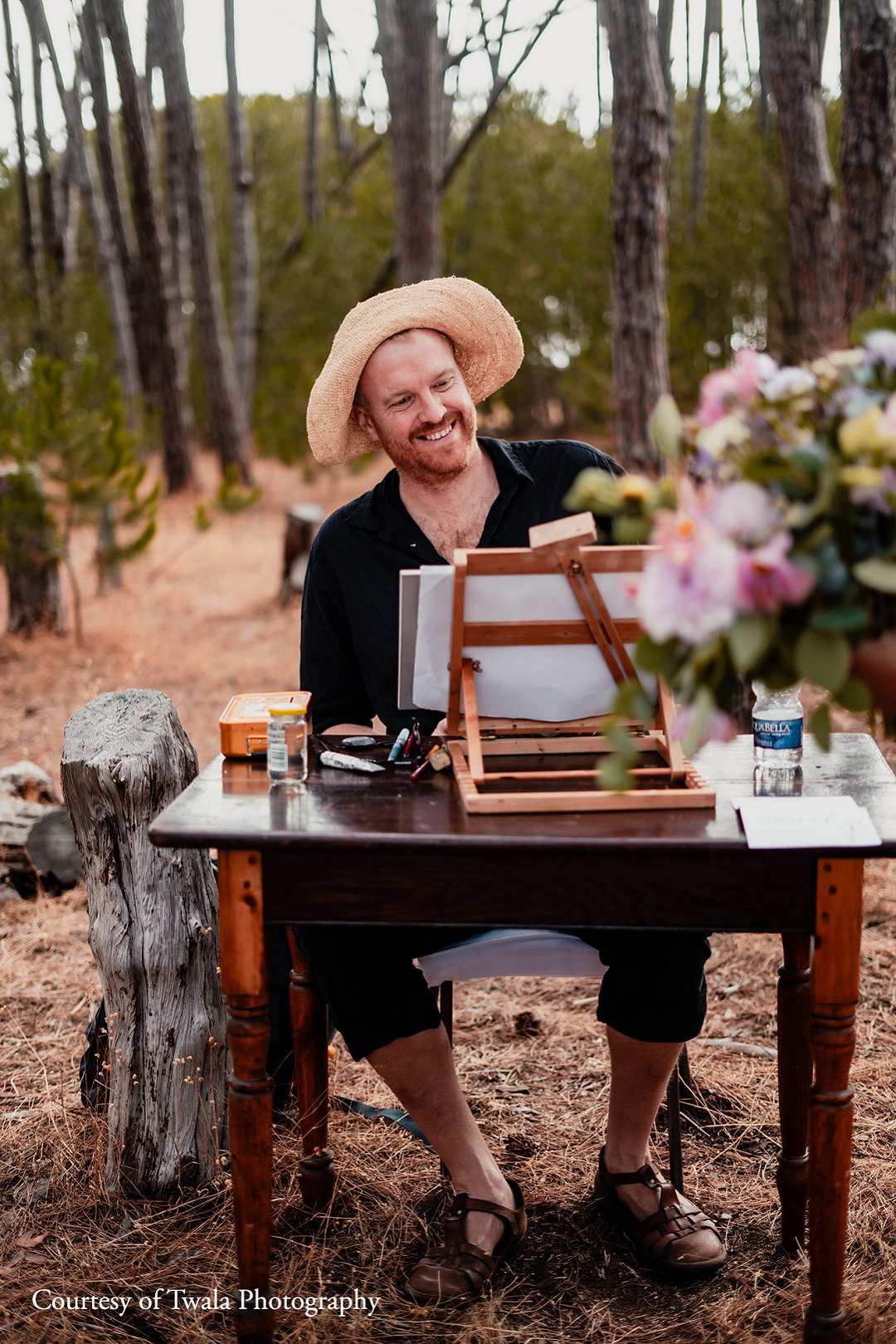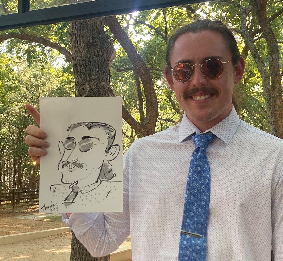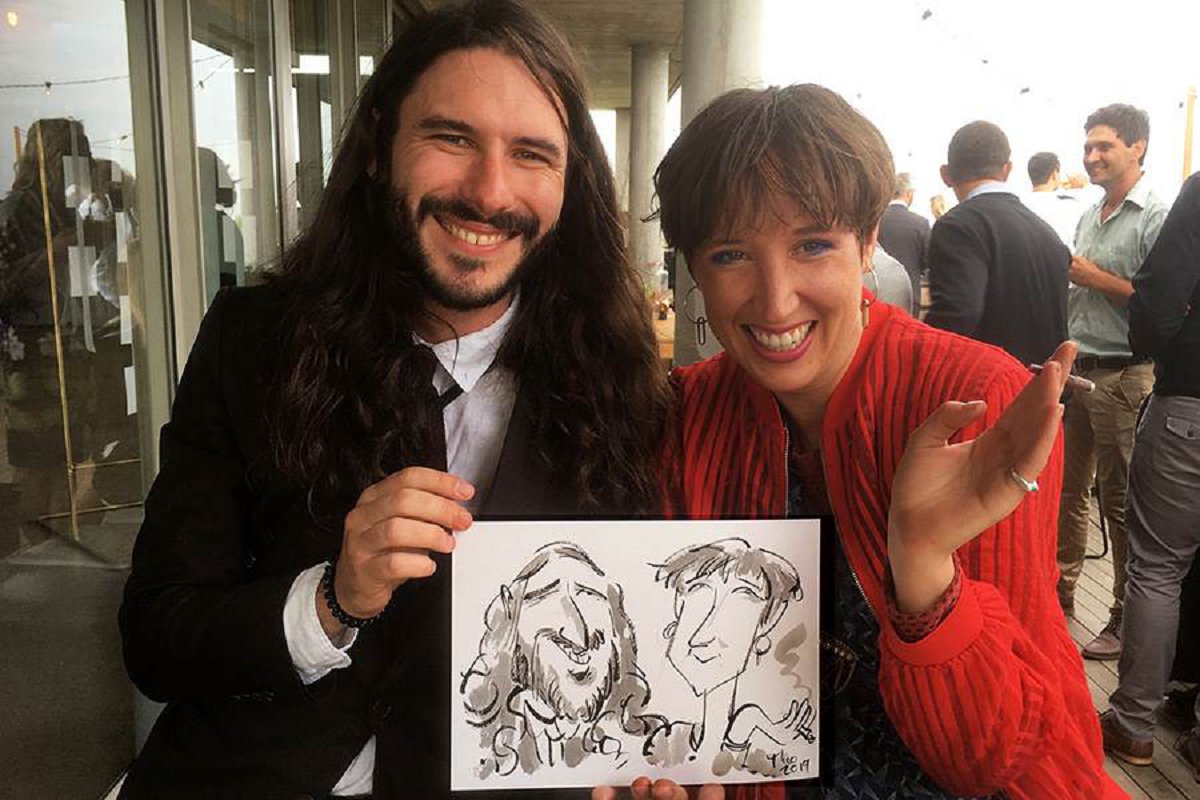Ted verskaf regstreekse impressionistiese en naturalistiese toneel sketse (seremonies, eerste danse, kanapees uur) wat die spesiale oomblik vasvang, sowel as meer humoristiese portrette tydens die kanapees en onthaal wat dien as beide vermaak en ʼn geskenk aan die trou gas. Hy het by dosyne troues en duisende feestelike gesigte geteken. Jou gaste sal ook nie te lank hoef te sit en die sitplek warm maak nie.